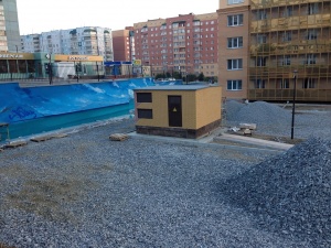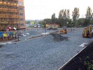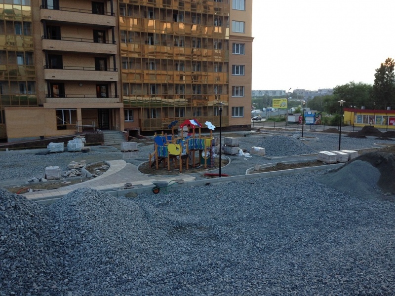 Кстати сегодня возвращался домой увидел приятную новость. Появились первые газоны!!! Раскатали готовые рулонные газоны.! В 21 час еще работники заливали площадку вокруг детского городка! Наверно неделя -две и закончат..