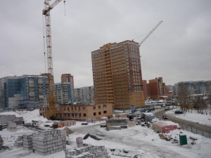 Вчера заезжал на стройку, на 1-м доме строителей достаточно много было, кран постоянно работал, активно какркас для балконов подвозили к этажам на внешнем лифте (или как он правильно называется