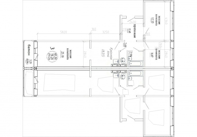 Нашел такую схему с размерами трешек 59 кв. Кому-то будет интересноправда они между собой не очень совпадают