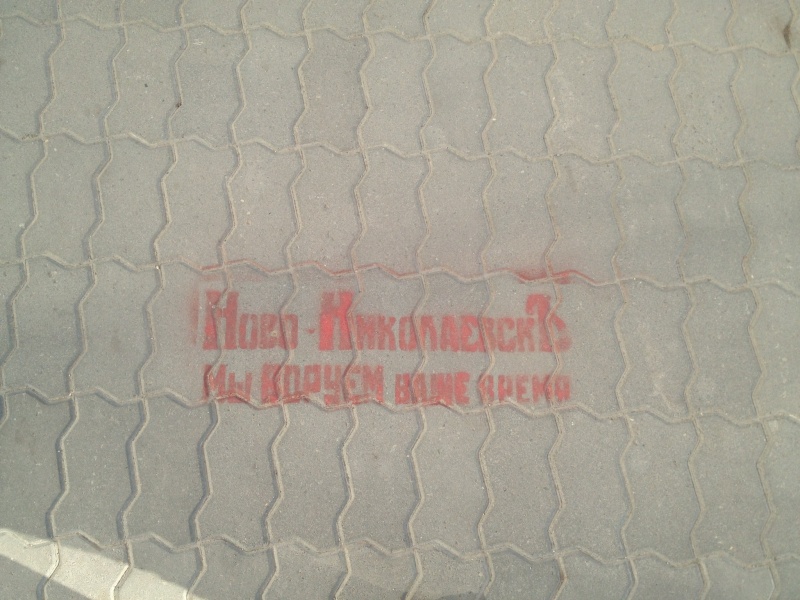 А вот такая антиреклама Ново-Николаевску появилась на брусчатке вокруг дома!!!Возле офиса НН смотрелось бы лучше!