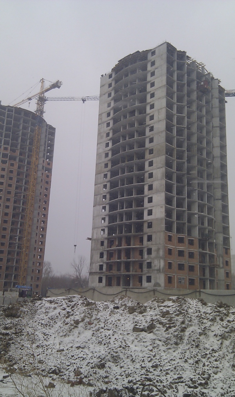 Пообщался с прарабом по 14-му дому. Настрой оптимистичный, хотя в конец декабря 2012, видимо он сам не верит. Кран сказал уберут в конце ноября или даже раньше. Окна пожаловался что монтирует небольшая контора, поэтому не может обеспечить нужных объемов производства. Если не случится увеличение темпов, то возможно только в декабре будет закончен монтаж.