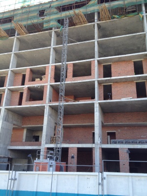 Как раз сегодня был на стройке. Каркас готов полностью, кирпичная кладка на последнем этаже доделывается, внутриквартирные стены на 18 кладут, стяжка в квартирах на нижних этажах уже сделана. Стяжка с виду ровная, стены тоже. фото только внутри помещения есть, скину попозже.