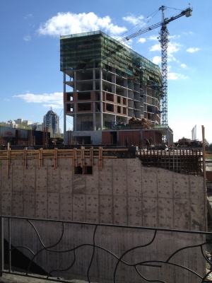 Кстати каркас полностью долили, осталось долить парапет с виду, кирпич кладут на 19 этаже.