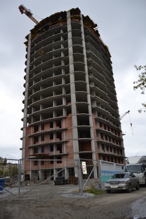 На 13 сентября заливается пол и несущие 15 этажа, на первых этажах появилась кирпичная кладка.