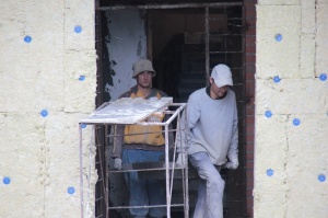 внешне на доме особо ничего не изменилось. со двора осталась не застекленной часть третьего подъезда и самые верхние этажи. территорию делают пока со стороны трамвая. фотографировать вчера не стал так как не вижу смысла, все равно теперь на доме особых изменений не видно так как фасад практически завершен.
