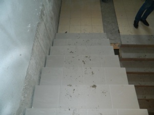 Плитка, которую видел, положена не очень ровно. Видимо, в подъезды допускают новичков - самое место учиться класть.