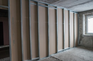 Поздравляю всех жильцов первого этажа: по всем подъездам нам сделали межкомнатные перегородки. В нескольких местах видел, что гипсокартон с одной только стороны, но это мало где - в основном все стенки поставлены, и трубы с унитазной обвязкой вкорячены.
