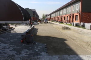 В брусчатку оделась Туманова 1А и почти вся Парковая. Уложено уже брусчатки 8 тысяч квадратных метров. Засунем пальцы в чернила, и будем надеяться, что погода даст поработать еще хотя бы недели три и завершить начатое.