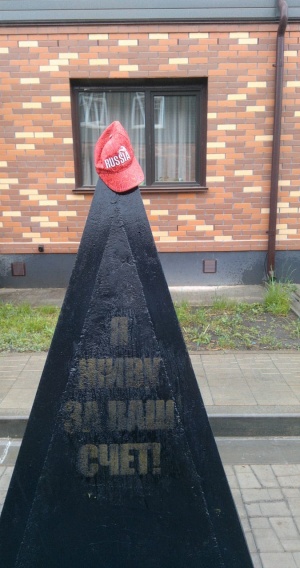 - вижу что по сравнению с прошлым годом стали хуже убирать поселок (хотя 2300 берут исправно). Зато управляющая компания придумала новый способ борьбы с должниками по коммуналке. На парковочное место возле секции тауна должника ставят такую черную пирамиду типа памятника на могилке с надписями "Здесь живет должник", "Я