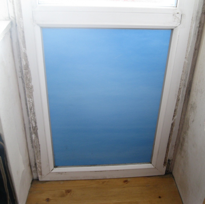 Вы за 5 лет не оттерли скотч (смывка для пены легко справляется) и не отодрали синюю защитную пленку от двери?
