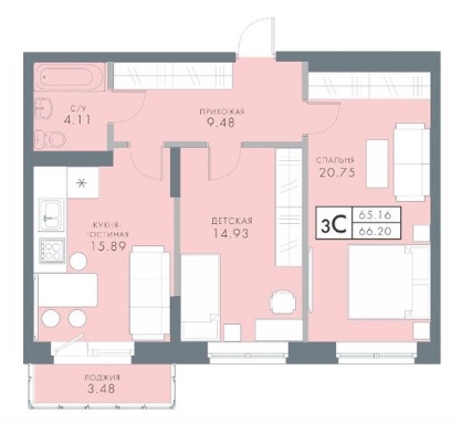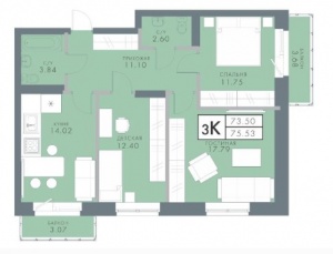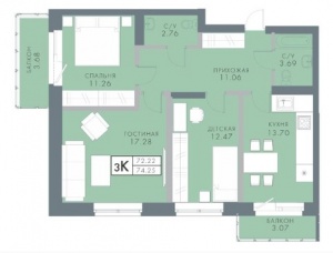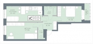 3к. студия - 66,2кв.м - 1, 11, 17 этажи