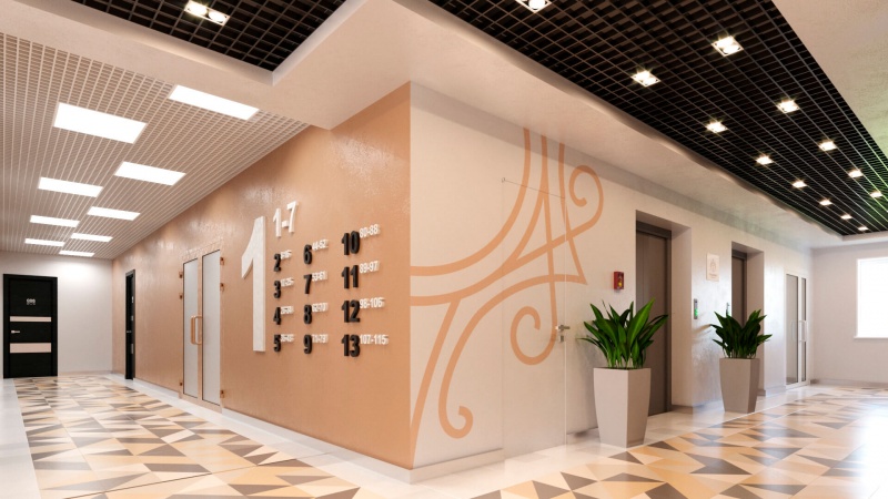 в связи с использованием в лифтовом холле керамогранита, изменилось цветовое решение напольной плитки. Это не значит, что застройщик пошёл на удешевление, напротив