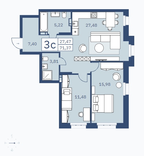 3х КОМНАТНЫЕ КВАРИТРЫ В ДОМЕ "Z0E"- 67.8кв.м - от 8.8150.000 - 4, 5, 7, 8 этажи