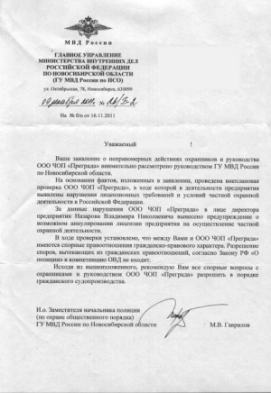 да просто отписка, толку то никакого. Сказали типа сам разбирайся.
