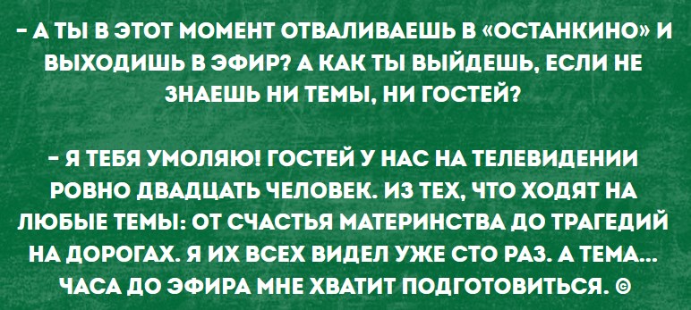 Ну вот тут целый комплекс проблем как раз. Что обсуждение этого праздника, который не праздник, привлекает только лишнее внимание той же молодёжи. И эффект получается обратный - "запрещают - надо поучаствовать". Ну и хэллоуин раз в году. А политические и юмористические программы на канале Россия как торговая марка Ашана - "Каждый день".