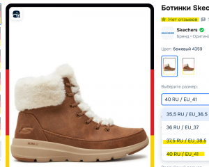 Следом вылез сайт skechers-benago.ru - сразу показался мошенническим - ботинки есть, размера, блин, нет - см. картинку.