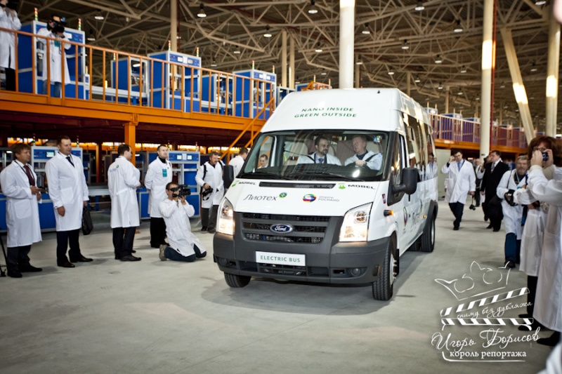 Сегодня Анатолий Чубайс торжественно открыл у нас в Новосибирске завод "Лиотех" по производству литий-инонных аккумуляторов, это совместный проект Роснано и китайской Thunder Sky Ltd, производимые аккумуляторы, позволят в частности, сделать городской транспорт электрическим, экологичным и экономичным и т.д., собственно, электромобиль оборудованным такими аккумуляторами и оттестил сам глава делегации.