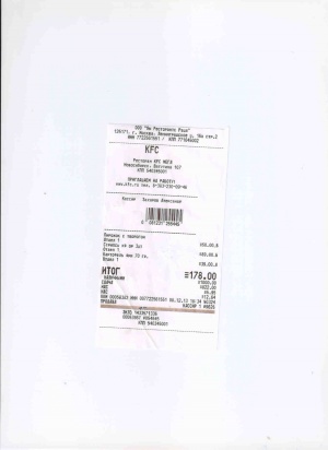 Смотри вложение. Вчера с женой забегали в Мегу, купили кое-что в KFC - чисто перекусить.