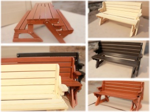 столы трансформеры,лавки-трансформеры, просто лавку в баню (ваще у многих любимая позиция), садовую лавку со спинкой,комплекты стол-стул, подставка -стремянка для кухни.