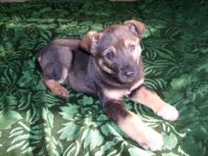 Щеночек похож на восточно-европейскую или немецкую овчарку (были мысли даже, что действительно овчарка, и может просто потерялась, но это все ж навряд ли, так как ошейников-поводков не было, да и бегает девочка не так уж быстро, при желании догнать легко).