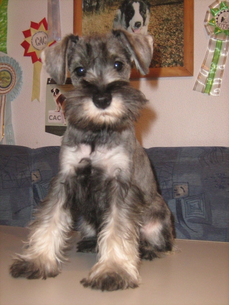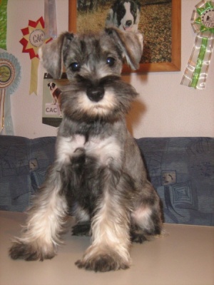 Продаётся девочка цвергшнауцера, окрас "перец с солью", 3 месяца,привита, без документов. Отец - кандидат в чемпионы России, мать без документов.