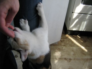 Если Ты обратила внимание, то котенка подарили в возрасте 7 недель. Согласись - ну очень рано