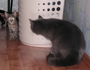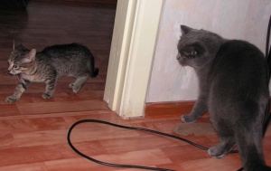 При том что оба взрослые, а у Вас все таки Клепа котенок