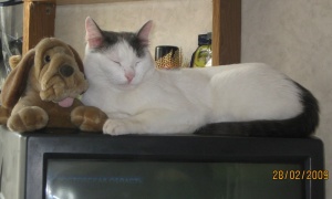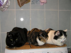 А мои по очереди любят дремать на стиральной машине, всем 9-ти места не хватает, так они иногда друг друга выживают.