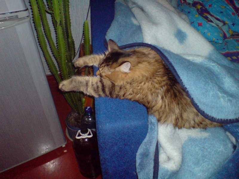 Сорри за плохие снимки, за фотиком надо лезть, а сотовый всегда под рукой лежит. Спала возле чашки с водой, потом вроде как попить опустила голову, потом глаза закрыла и спит себе дальше....прямо в чашке