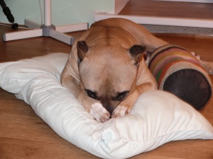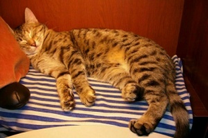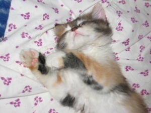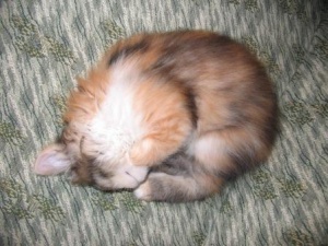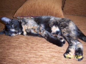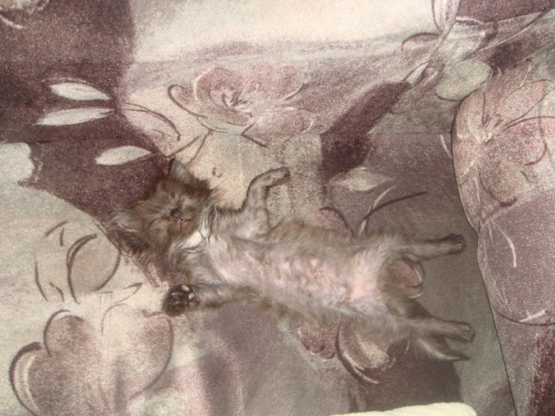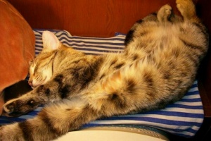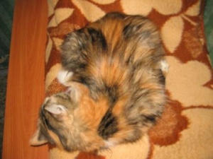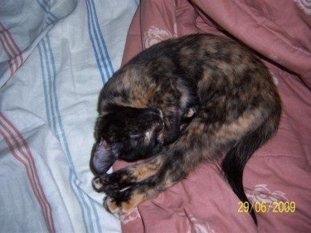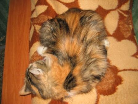 сейчас спит а-ля курица, постоянно передние лапы выворачивает неудобным (на мой взгляд, конечно же) способом и спит довольная