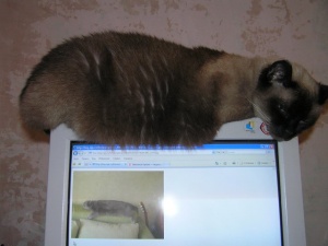 Следующий кадр был со свешиваюшейся лапой, как будто он пытается удержаться за монитор, да я нечаянно удалила.