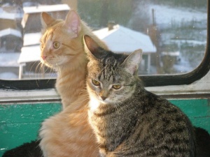 Наблюдать за ними - это что-то. Щас сидят и смотрят шоу "Синички". Вот только сфотать в процессе не удается. Не кошки, а две юлы.