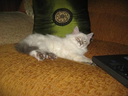 Маш, пришла к выводу (по фотам): Дарси, хоть и довольно крупный, но мельче моего. Мой ведь -- приехал мааааленьким котенком, немногим старше месяца от роду, но быстро-быстро вымахал. Даже хозяйка мамы-кошки тогда удивилась, что, оказывается, каким огромным стал и так быстро.