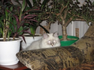 И правда и Стешку намочить, пусть хоть поспать даст... Нет, ну мало ей стресса от переезда, так и еще и кот ей подавай....