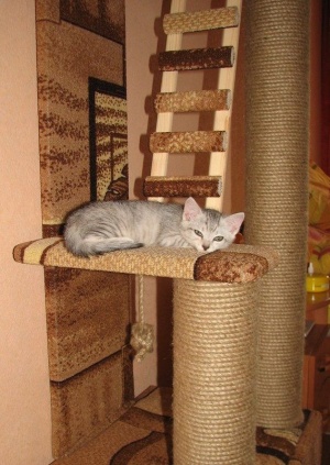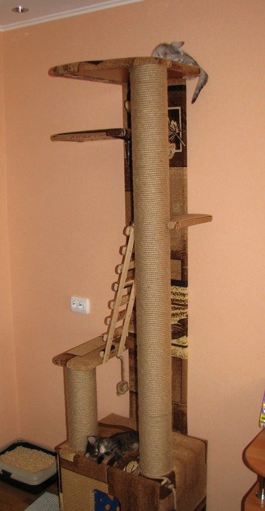 тут спят на разных этажах после игр, младший еще не рискует лазить по столбам, но на дом забирается легко, кстати старший к самому дому (конуре) равнодушен, а младший уже 2 раза в нем спал, в т.ч. ночью