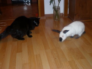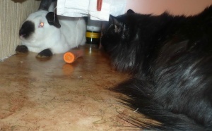 Эй, друг! Ты что там под батареей сидишь? Съешь хоть морковку! Не хочешь? Тогда я щас за сеном сбегаю- там ещё осталось..