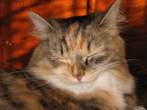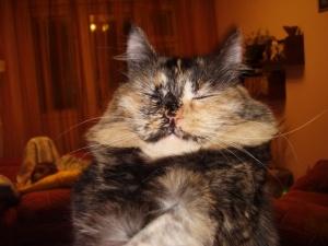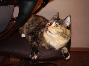 Красотуля Феня! А есть фотка, где она прямо смотрит? я так поняла у нее мордочка посерединке делится на черную и рыжую?