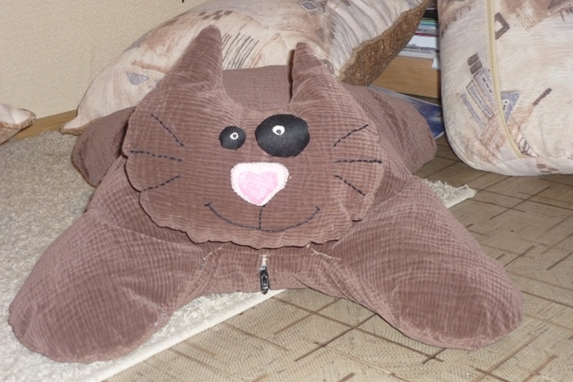 Нашла у себя полный пузырек (10 мл.) полисептина - противовоспалительные ушные капли, написано можно и собакам и кошкам. Нам как-то безнадобности могу подарить если кому надо. Срок годности до сентября 2010 г. так что еще можно использовать хранился в коробочке вместе со всеми лекасрствами так что думаю вполне пригоден для использования.Вот, у дочки в компе нашла несколько фоток. Попытаюсь вставить. "Мартовский кот!- в данном варианте шился как напольная подушка- дочка на полу проводит много времени, это ее "рабочее пространство". Аналогичный кот "карманного" размера был сшит за 1 ночь и подарен подруге- фото не осталось...