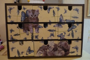 А далее- два икеевских комодика, отделаные в технике декупажа- тоже мне в подарок...Ух ты, как здорово!!!! А я такой комодик простой красочкой покрасила, даже не догадалась декупаж исполнить