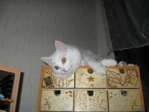 Экзема... Увы, у нас это периодически вылазит, мы уже привыкли. Когда сильное обострение- пьем таблетки, это летом обычно, а так- просто обрабатываем- дезинфицируем. Как мне сказали- это не лечится, только обострения снимать отчасти. Если все время на кортикостероидах- рядя преднизолона- держать, обострений может и не быть- но киса долго не проживет, иммунка просто умрет. Увы, последствия подвального происхождения. Пося живет за всех своих ратьев и сестер- больше никто не выжил, не успели спасти. Поэтому Посе у нас очень много позволяется! А уж если можно Посе- как запретить Алисе? Вот и стараемся создать им "кошкин рай"- насколько можем, конечно!
