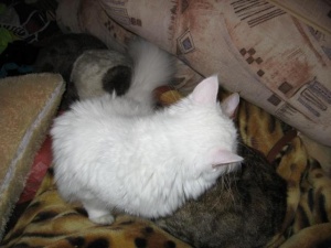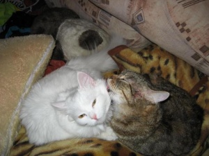Таня, спасибо. Они действительно подружились с первой минуты. Когда я принесла Мишку, Гриша выбежал в коридор и спросил меня : "Мр-р?", а ему ответил Миша :"Мр-р-ня". Меня так это рассмешило тогда, хотя было не до смеха в тот день. И сразу поскакали в комнату. Мишка единственный, кого Гришка принял, раньше с другими было в кровь и страшно, попадало мне тоже на орехи хорошо.