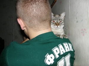 вообще, у нас наметилось разделение партий: Ханя - "мой котик", Ева - "кошка мужа". Подумать только! Меньше года назад муж умолял меня не заводить кошку, "Оно ж засрет все"...