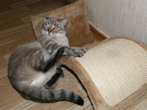 Аааааааааааааааааа, Лилуша, девочка, какая красавица. Правда попку и щечки наела. А взгляд тот же. Как же я рада за нее. Танюша Лисенка тогда выручила с передержкой, а так бы некуда эту дикарку было деть, хоть в подвал обратно, потому как у женщины она всех кошек разогнала сразу, одну под ванну, другую на микроволновку в кухне, котенок-подросток на штору залез, оборвал гардину, она свалилась на телевизор. А Лилу спокойно взгромоздилась на кровать и стала вылизываться.