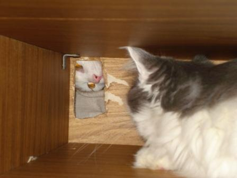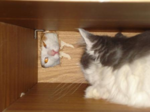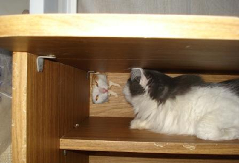 Дася вообще охамел - хватает ее лапами за шею и кусает за голову. Люлей получил уже.
