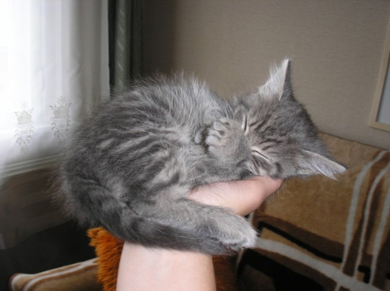 Такому маленькому пупсу нужно сейчас хорошо питаться, чтобы не отстал в развитии по росту, т.к. не выкормлен кошкой по сроку (хотя бы до 2,5 мес.).