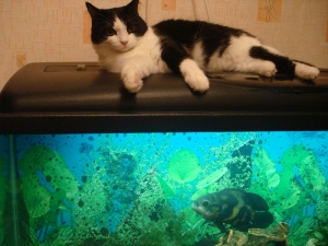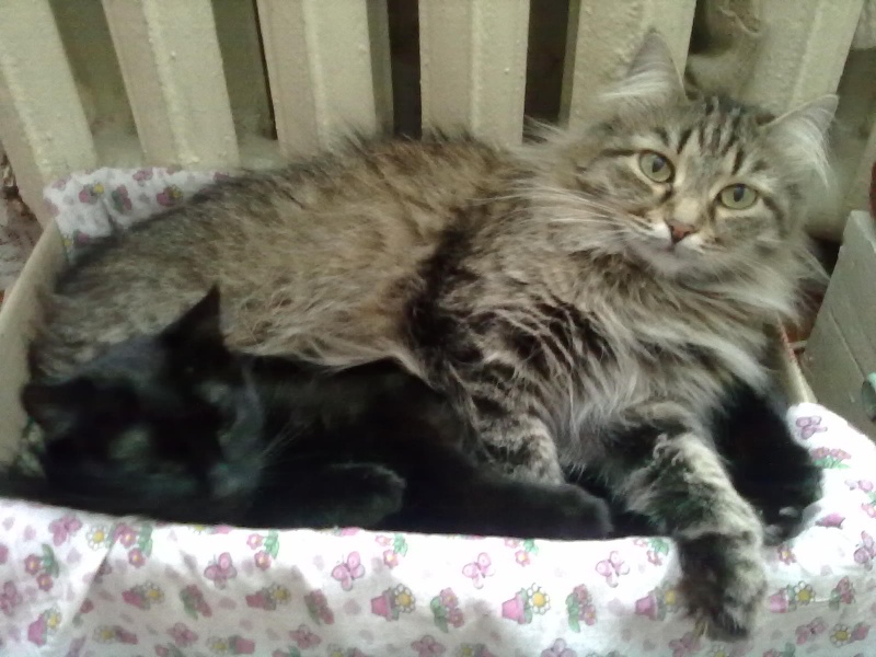 Дома более похожая фотография нашлась бы, но для затравки моя Рыся и кошка leotaurus