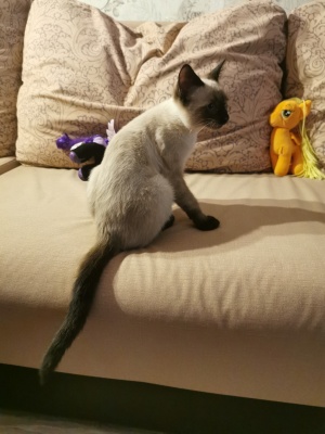 Девочки, подскажите, пожалуйста, по моему котику (5месяцев), покупала просто по объявлению, родители оба сиамы на вид. Мне кажется по виду тайский или смесь какая то?