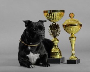 После стаффбулей под этим экспертом шли бультерьеры и он вообще не нашёл суку достойную титула Чемпион Евразии))) Даже сука получившая Серебряный ошейник ушла от него с Очхором