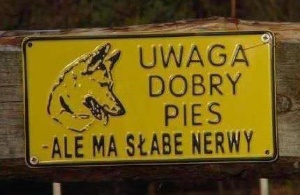 *перевод* "Собачка, как бы, добрая, но нервы - ни к черту"