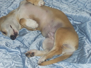 ). А теперь она упитанна и выглядет смешно, как овчарка на таксячьих лапках.